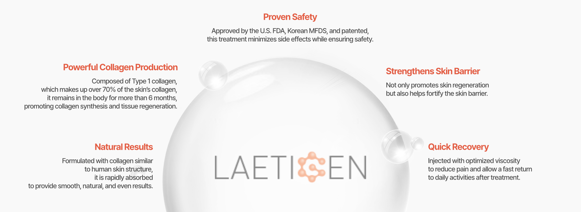 Laetigen is a new-concept skin booster that delivers 99.9% pure Type 1 collagen,
